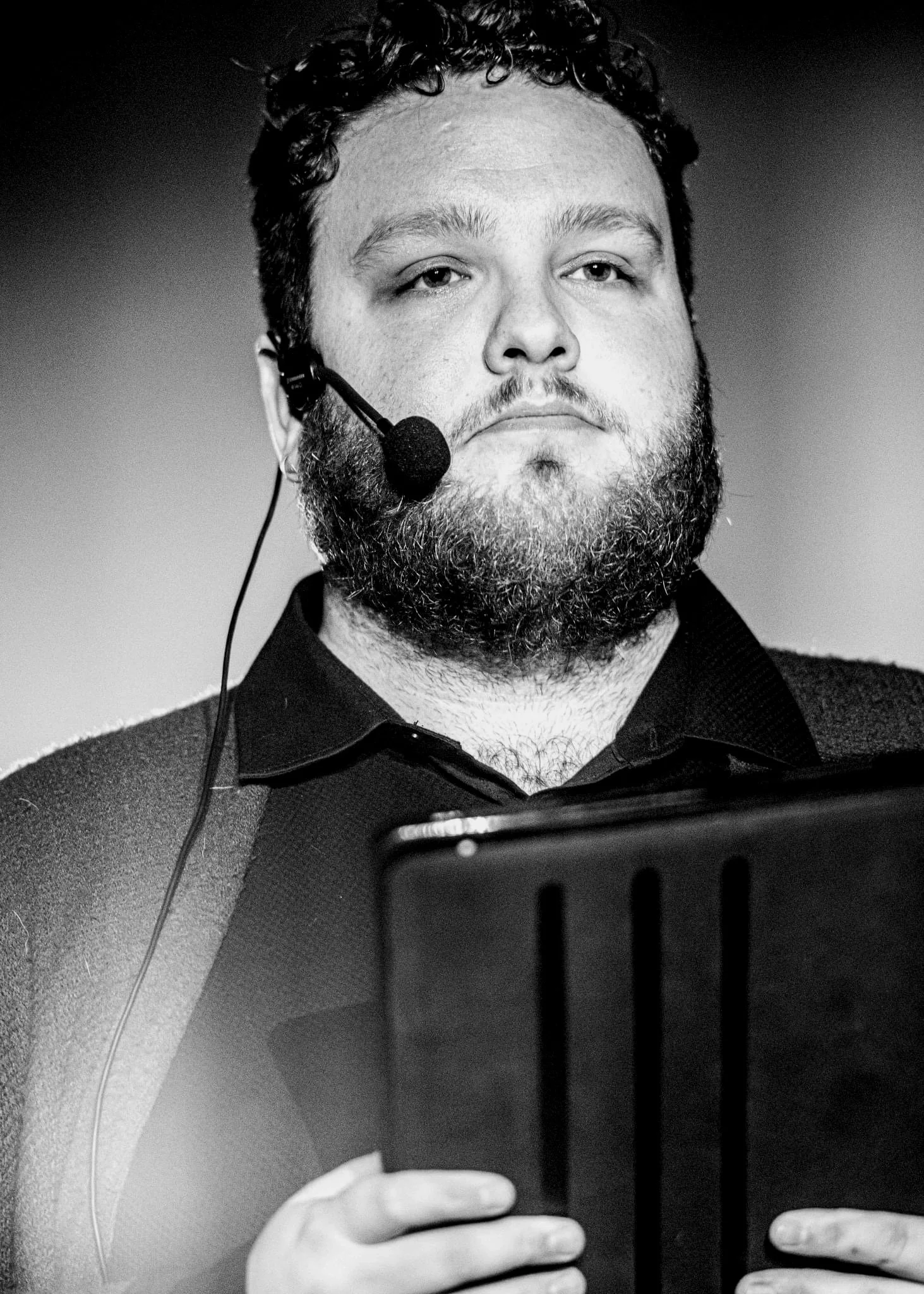 Surveying the performance from a regal high chair, Elias Wilson (operatic tenor and audio describer) was Trace‘s charming host… His presence uplifted the concert atmosphere…his descriptions found a humour that’s quite rare (and refreshing) to see at a performance.